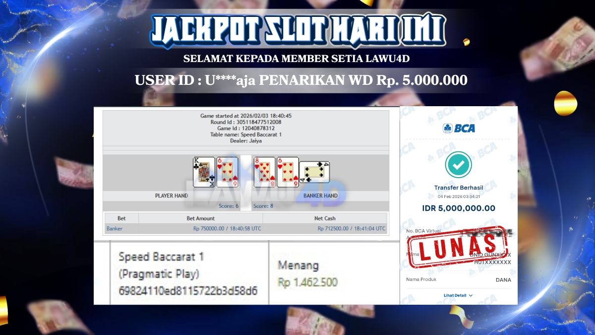 JACKPOT BESAR SPEED BACCARAT 1 Wd Sudah Lunas & Tuntas Rp 5.000.000