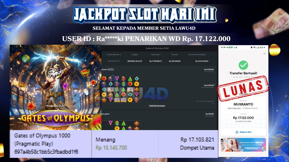 JACKPOT Kali Ini Di Gates Of Olympus Wd Sudah Lunas & Tuntas Rp 17.121.000