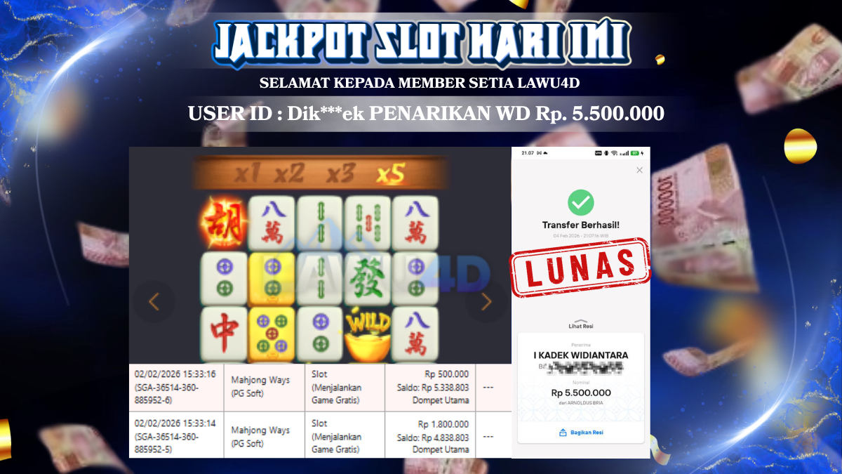 JACKPOT LAGI DI MAHJONG WAYS Wd Sudah Lunas & Tuntas Rp 5.500.000