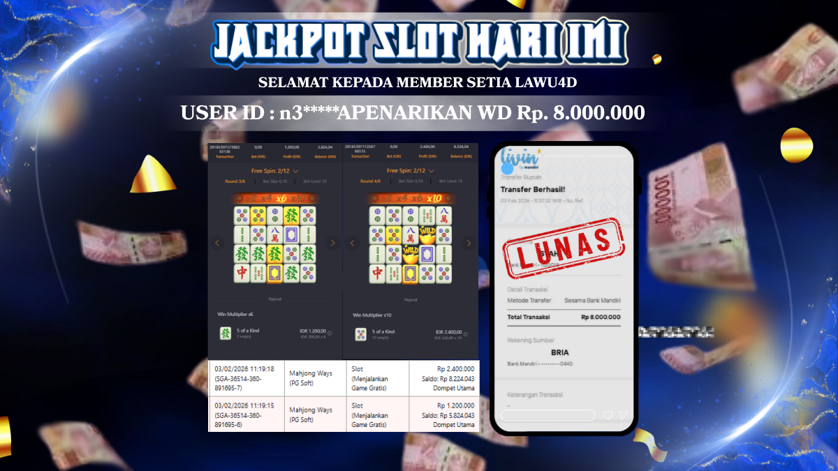JACKPOT TERUS DI MAHJONG WAYS Wd Sudah Lunas & Tuntas Rp 8.000.000