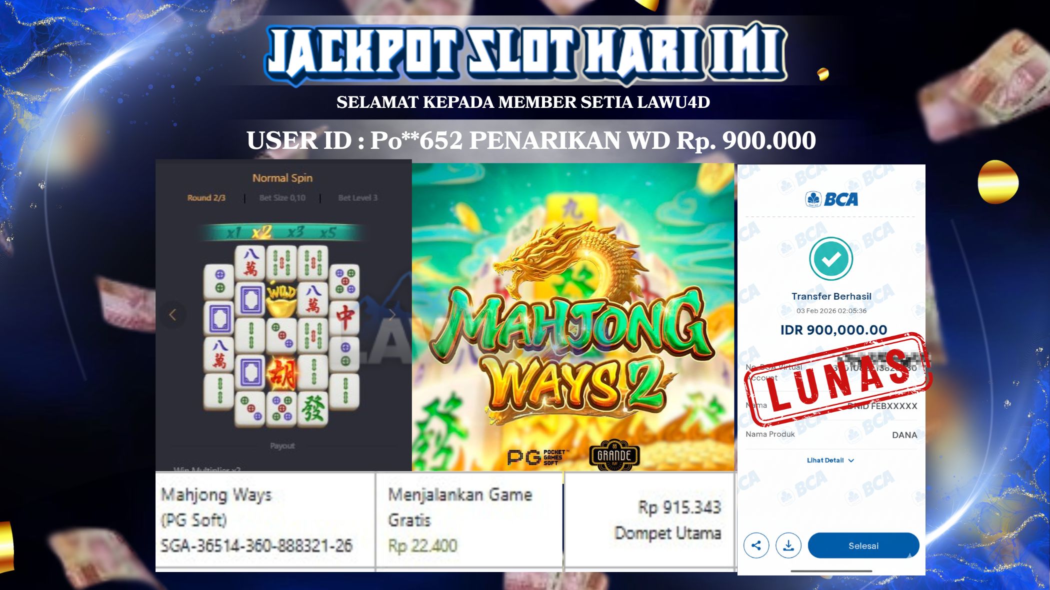 JACKPOT TERUS DI MAHJONG WAYS Wd Sudah Lunas & Tuntas Rp 900.000
